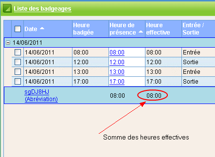 •Somme des heures effectives provenant des badgeages enregistrés dans des plages de type Fixe |